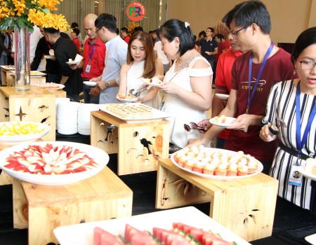 Quy trình kiểm soát nghiêm ngặt: nhập hàng, lưu kho, chế biến, chia phần theo khay và phục vụ.